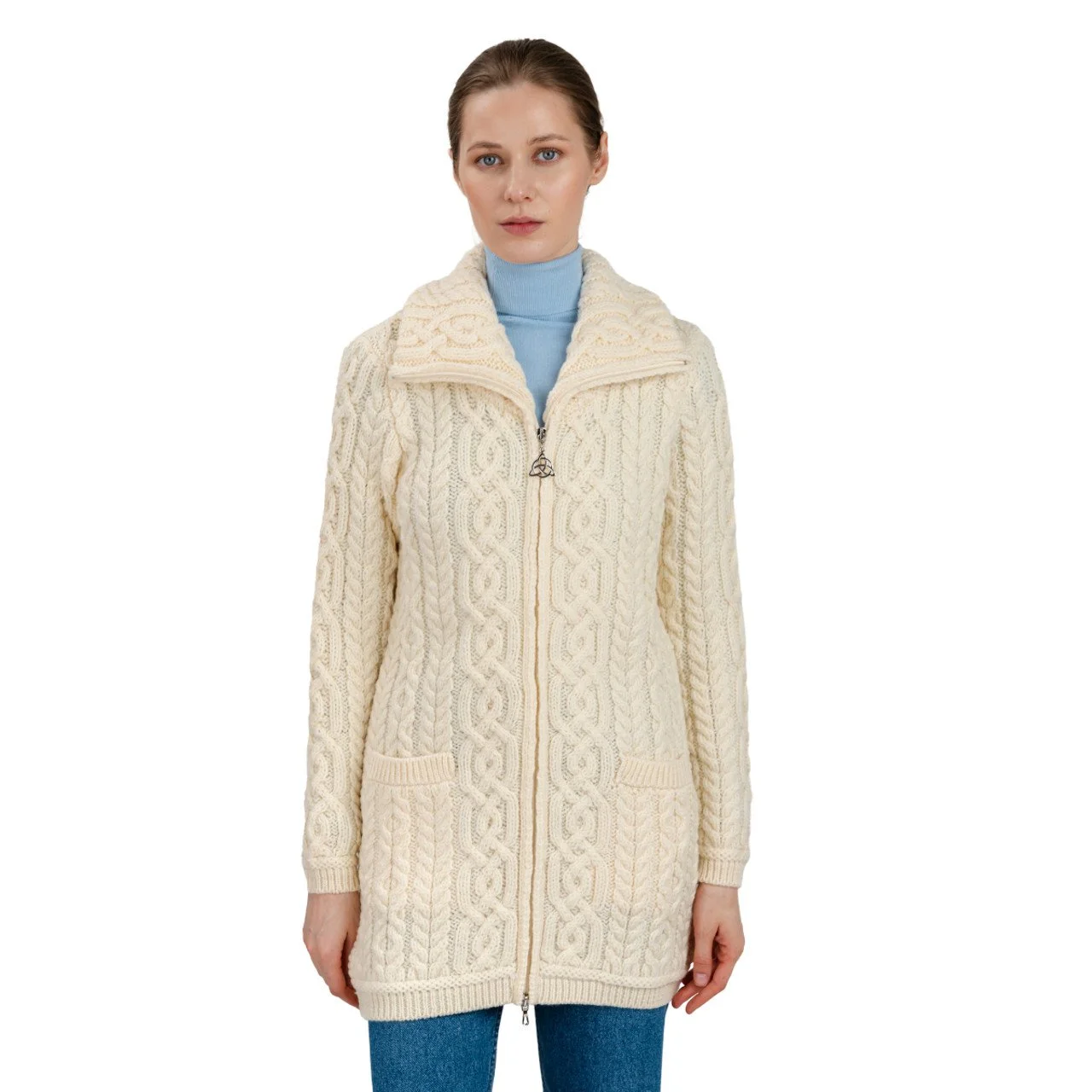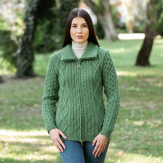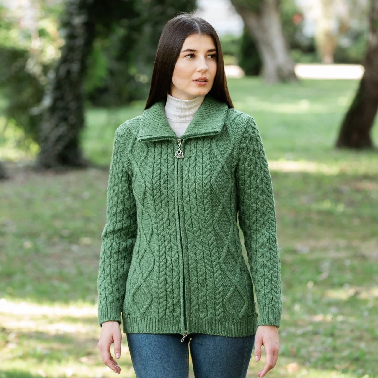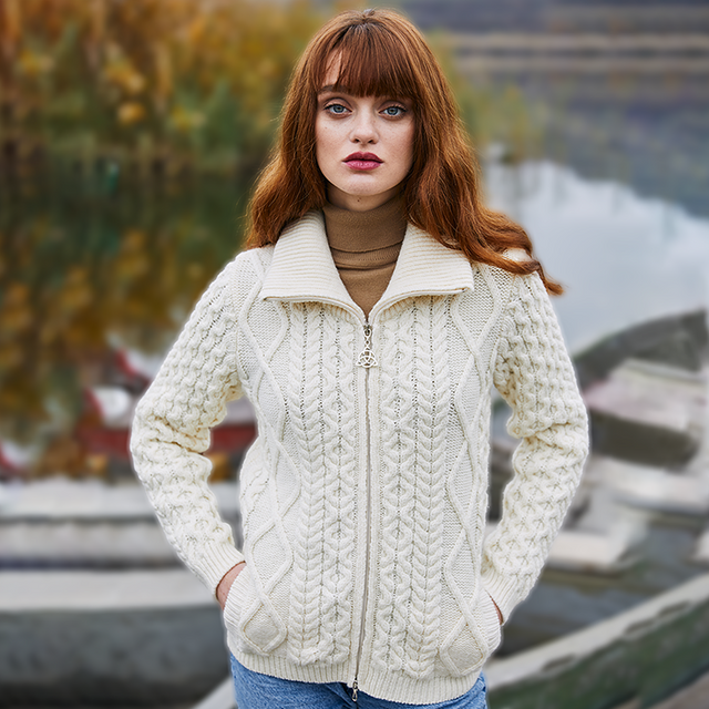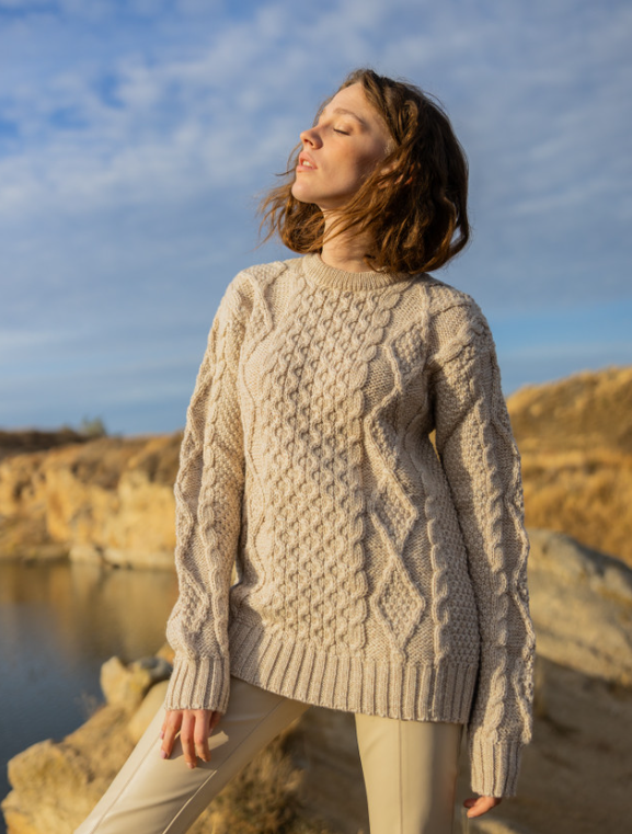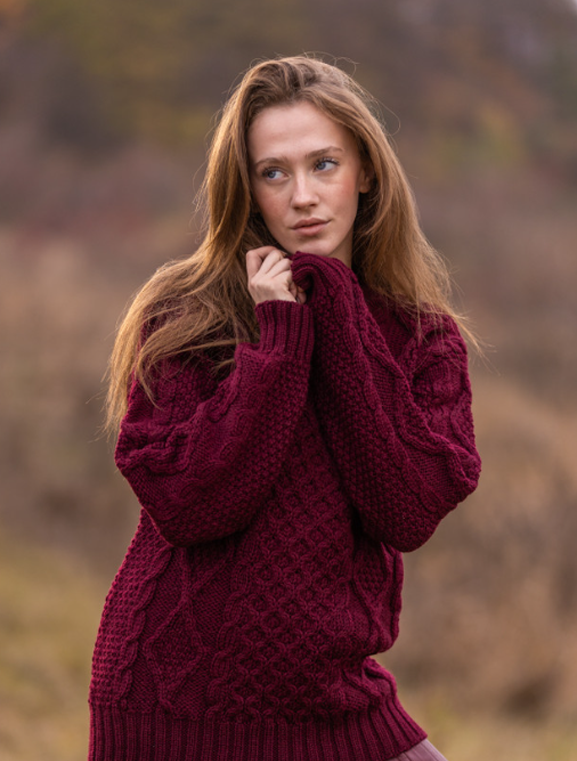 Our women’s Aran wool jumpers are made in Ireland and made to last — warm, stylish, and full of Celtic charm.